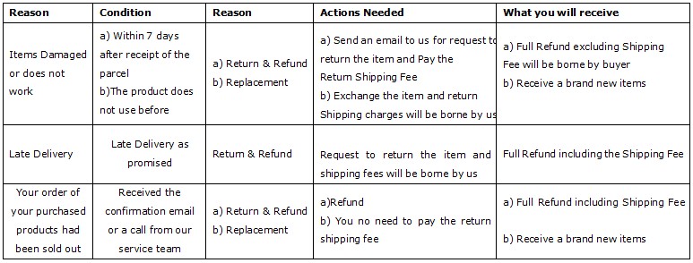 6.Final sales, pre-order,opened packaged item are non-returnable. Please note that shipping and handling charges are non-refundable.